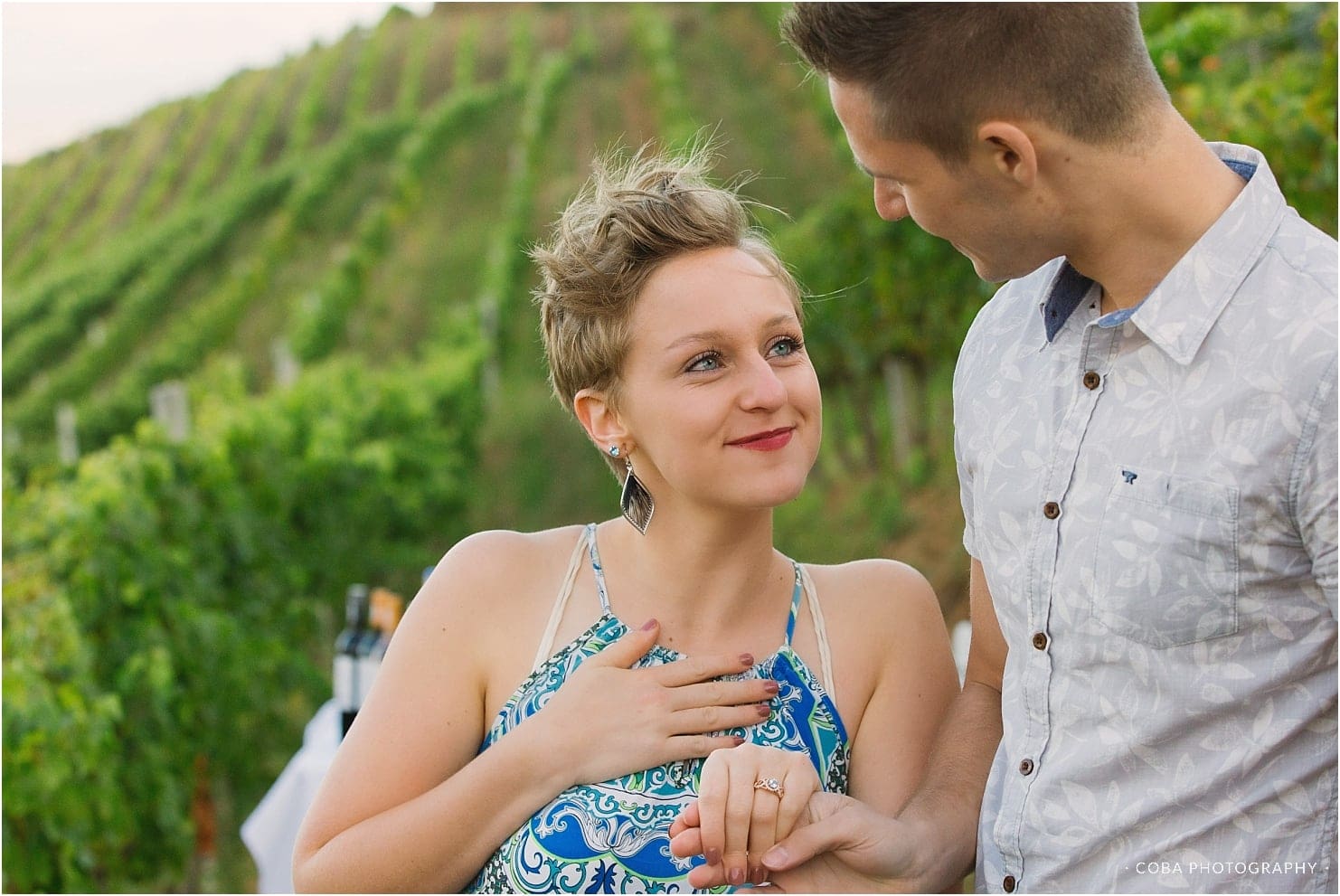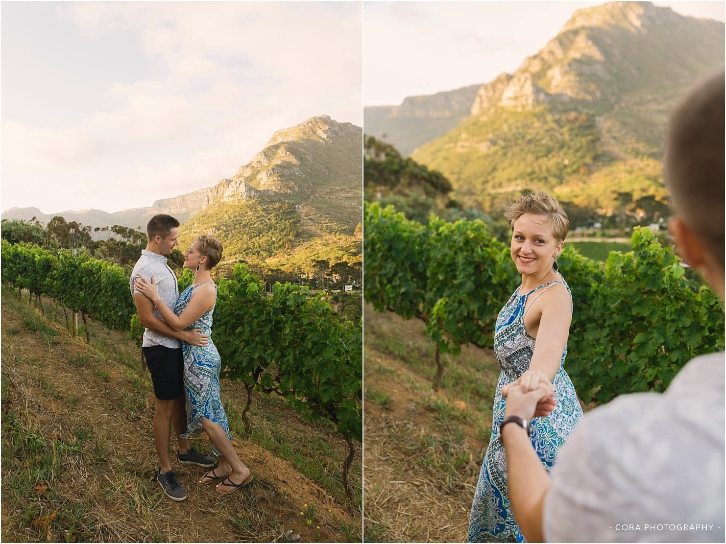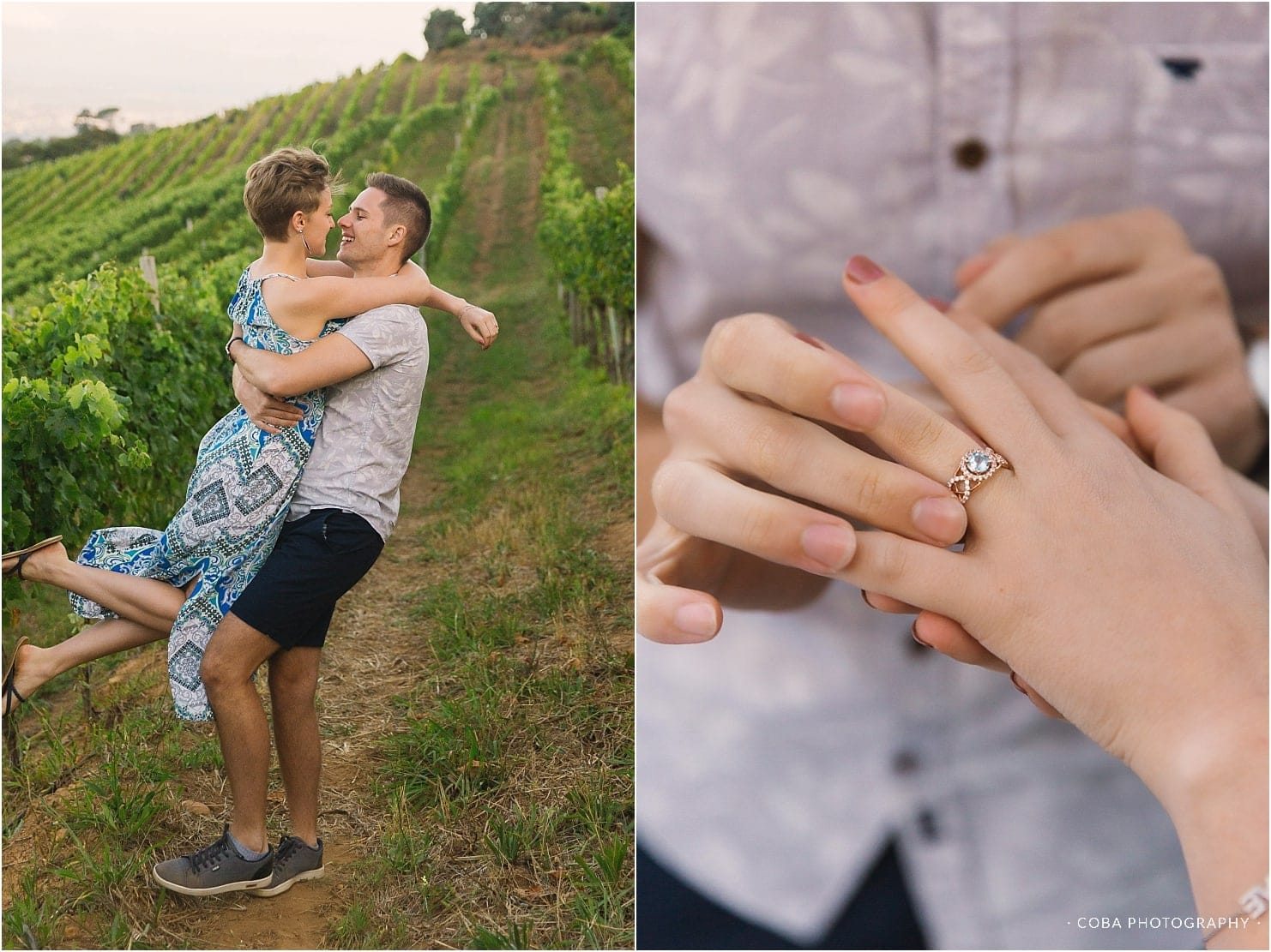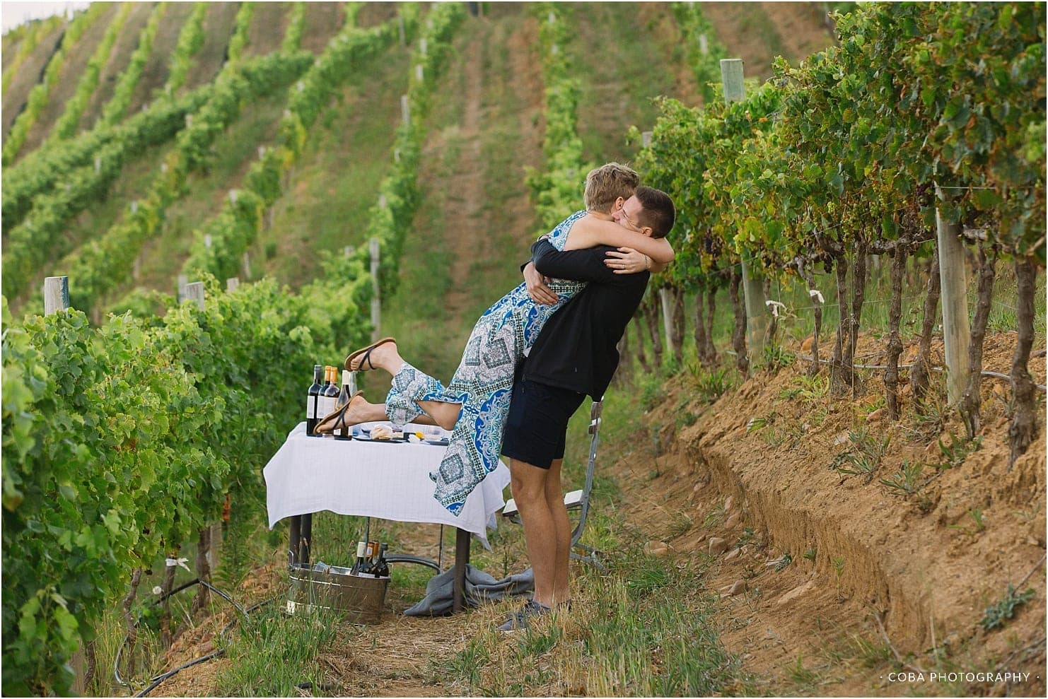 A romantic proposal in the vineyards at Beau Constantia.