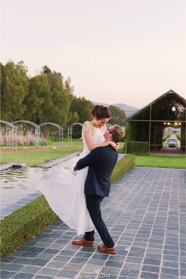 Service providers: Dress: White Lilly Bridal; Make-Up & Hair: Nadia; Decor: All things wedding; Lighting: Lekker Troue; Dessert: Peaches & Cream; Videographer: Kikitography Motion; DJ: DJ Dean; Groom suit: Woolworths; Rings: Mapula Design; Assistant: Kirsten Goslett
