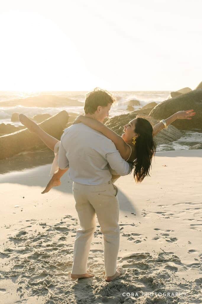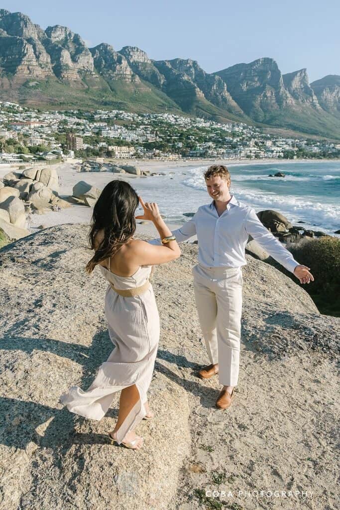 There is a reason I find myself back at this iconic spot so often; a Maiden’s Cove Sunset Proposal offers a level of drama and romance that is hard to beat. For Bill and Ana’s special moment, the Atlantic Ocean and the silhouette of the Twelve Apostles provided a breathtaking 360-degree backdrop. As a regular at this scenic lookout, I’ve learned exactly how the golden hour light hits the granite boulders, making it the perfect ‘secret’ stage for a surprise engagement in Cape Town.