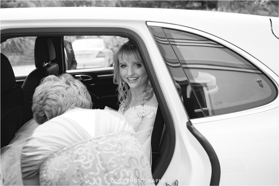 Their engagement: “Pierre het my na ‘n pragtige gastehuis geneem wat oor Blouberg Strand uitkyk, ons het daar op die stoep gesit en piekniek gehou. Ons het baie lekker gegiggel, omdat ons altwee geweet het wat die rede vir die piekniek was! Die gastehuis was versier met pienk roosblare en oulike hartjie-klippies. Die uitsig was regtig ongelooflik, veral toe die son begin sak het. Pierre het voorgestel dat ek na die see moet kyk, ek het toe omgedraai na die see se kant toe en met die omdraai na sy kant, was hy op sy knieë met die boksie oop en die ring wat na my staar!”