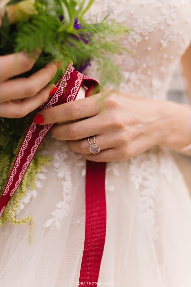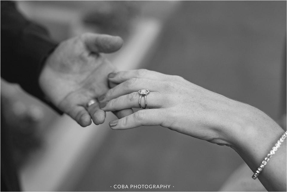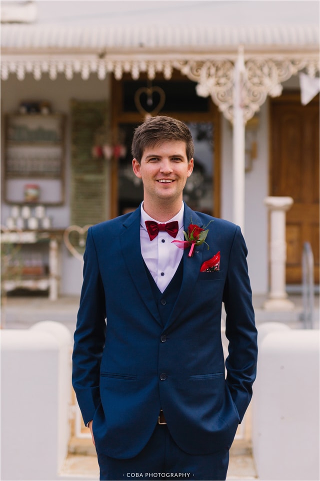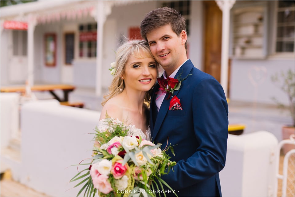 Their engagement: “Pierre het my na ‘n pragtige gastehuis geneem wat oor Blouberg Strand uitkyk, ons het daar op die stoep gesit en piekniek gehou. Ons het baie lekker gegiggel, omdat ons altwee geweet het wat die rede vir die piekniek was! Die gastehuis was versier met pienk roosblare en oulike hartjie-klippies. Die uitsig was regtig ongelooflik, veral toe die son begin sak het. Pierre het voorgestel dat ek na die see moet kyk, ek het toe omgedraai na die see se kant toe en met die omdraai na sy kant, was hy op sy knieë met die boksie oop en die ring wat na my staar!”