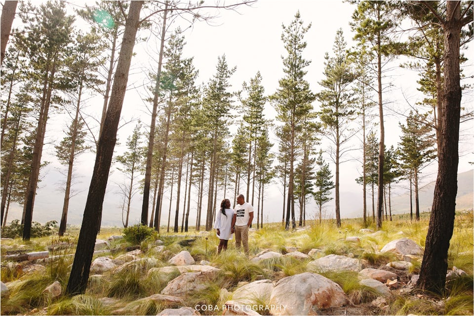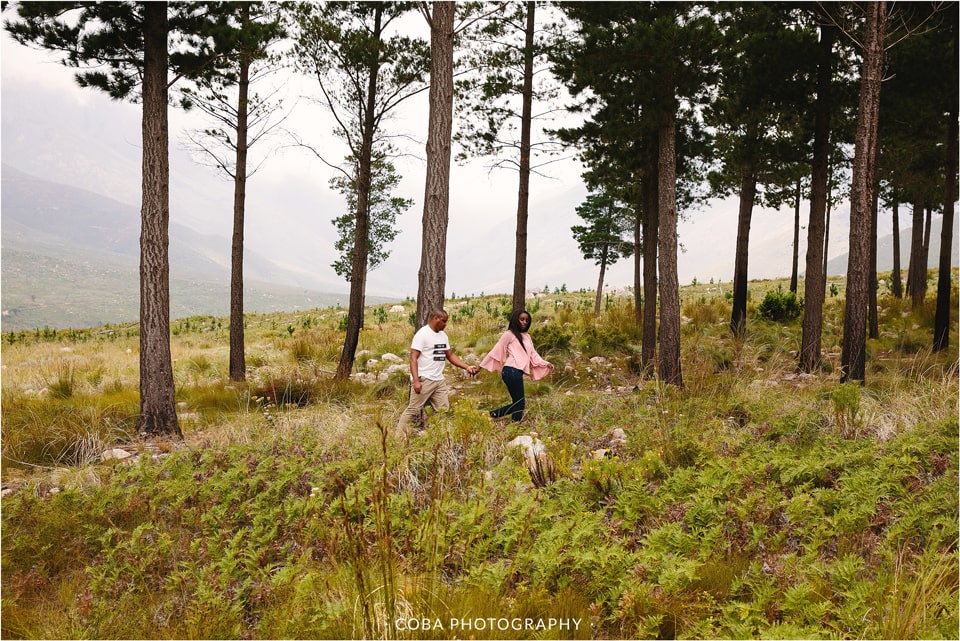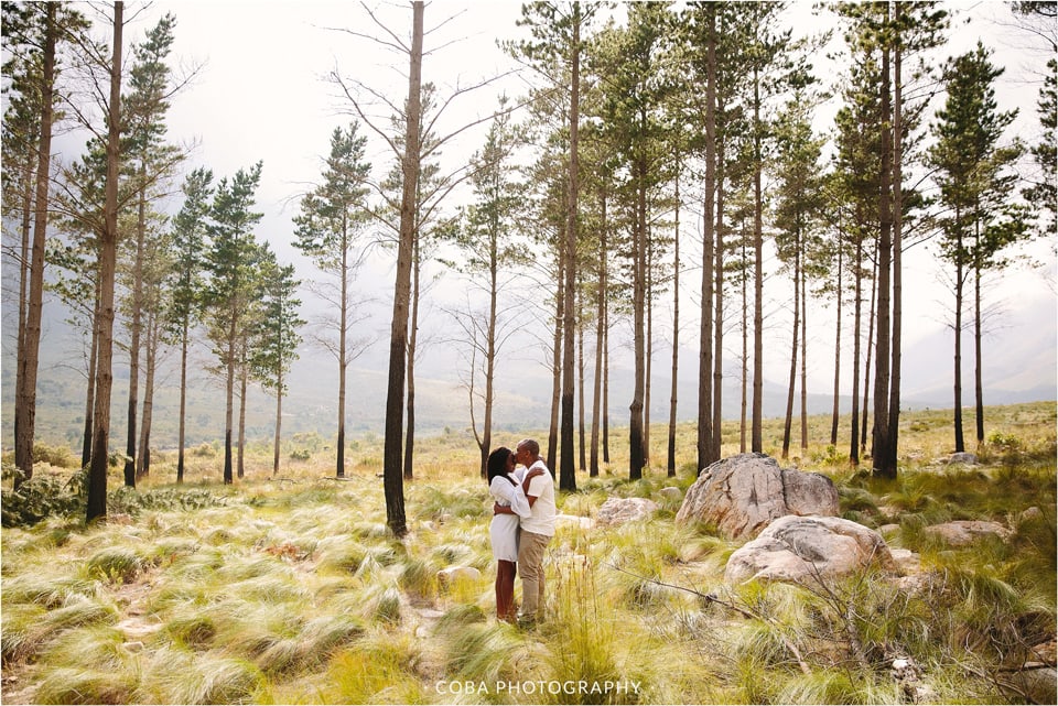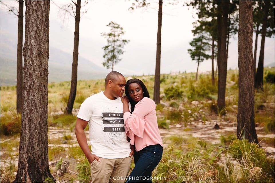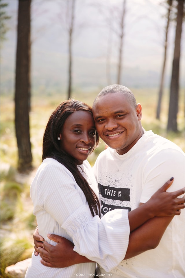 Engagement photoshoot in Stellenbosch at Jonkershoek Nature Reserve. By Wedding Photographer, Coba Photography.
