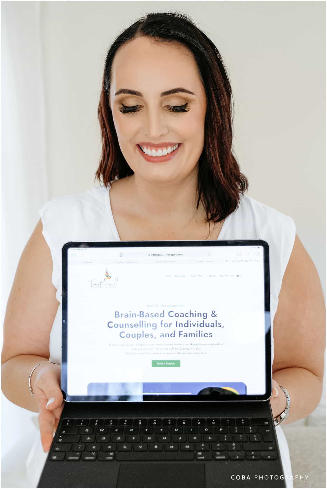 One of the highlights from my recent mini brand shoot day at Socialight in Tableview was photographing Tinet—a woman whose story is as layered and inspiring as the work she does. This wasn’t just any shoot; it was a therapist brand photoshoot in Cape Town designed to help her step confidently into the next chapter of her practice.